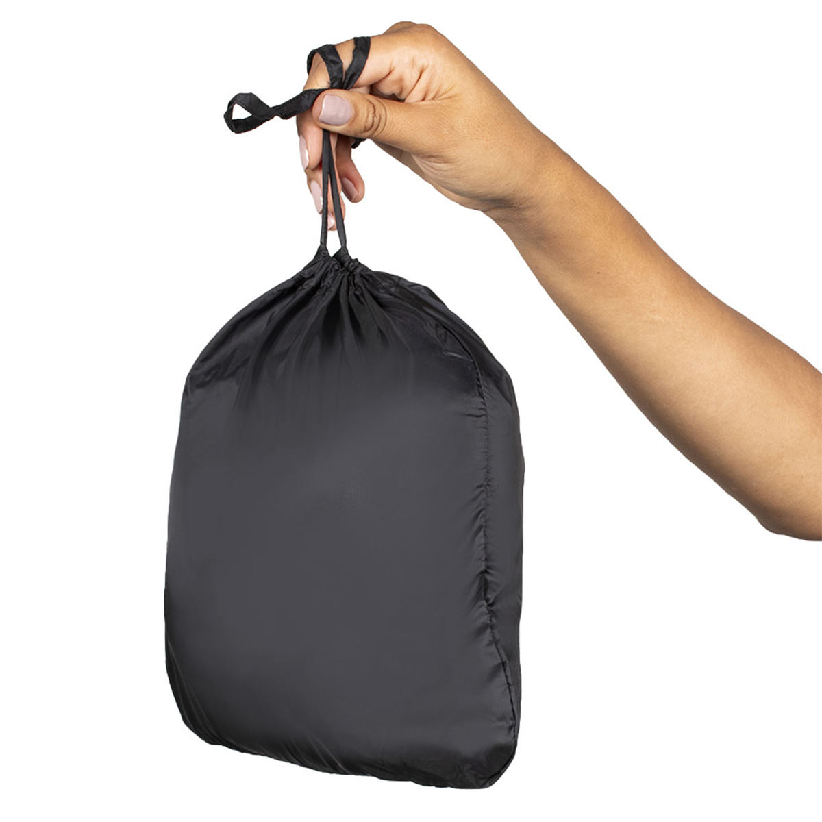 שק קטן בצבע המעיל לאחסון קומפקטי ונוח.