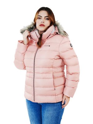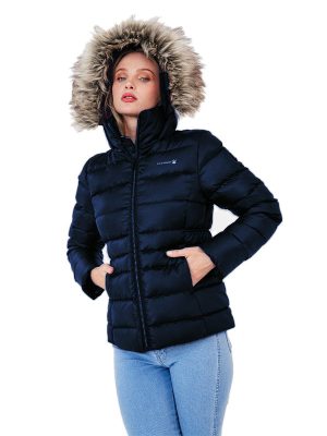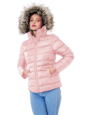 למעיל כיסים בציידי הגוף וכובע עם פרווה לחימום אופטימלי.